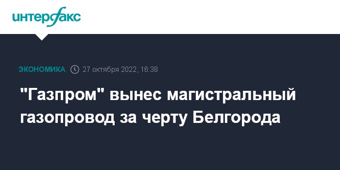 Москва. 27 октября. INTERFAX.RU - "Газпром" завершил реконструкцию 40-километрового участка магистрального газопровода "Шебелинка-Брянск-Курск-Белгород" (ШБКБ) и вывел трубы высокого давления за пределы Белгорода, сообщил Ростехнадзор.