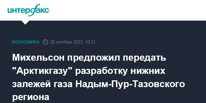 Москва. 28 октября. INTERFAX.RU - Глава "НОВАТЭКа" Леонид Михельсон предлагает передать "Арктикгазу" (совместное предприятие компании с "Газпром нефтью") лицензии на глубокозалегающие залежи месторождений Надым-Пур-Тазовского региона (НПТР), освободив тем самым ресурсы Ямала и Гыдана для экспорта газа в сжиженном виде.