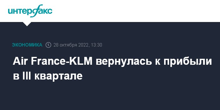 Москва. 28 октября. INTERFAX.RU - Франко-нидерландская группа Air France-KLM в третьем квартале 2022 года вышла на прибыльный уровень, однако ее чистая прибыль не оправдала ожиданий аналитиков.