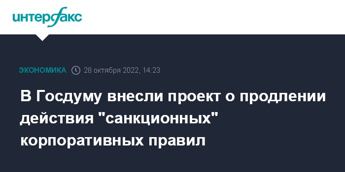 В Госдуму внесли проект о продлении действия "санкционных" корпоративных правил