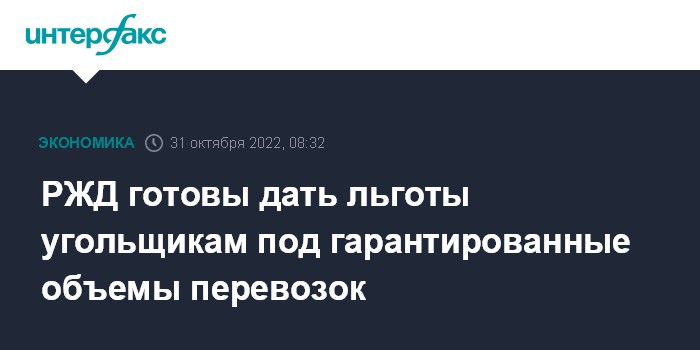 Москва. 31 октября. INTERFAX.RU - ОАО "РЖД" готово предоставлять льготы угольщикам под гарантированные объемы перевозок, сообщил "Коммерсанту" замруководителя компании Алексей Шило.