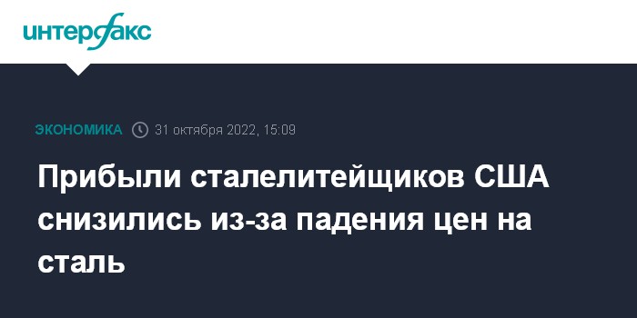 Cleveland-Cliffs, United States Steel Corp., Nucor Corp. и Steel Dynamics сообщили о значительном сокращении прибыли от операций по выпуску стали в июле-сентябре по сравнению с тем же периодом прошлого года, когда цены находились на рекордных отметках.