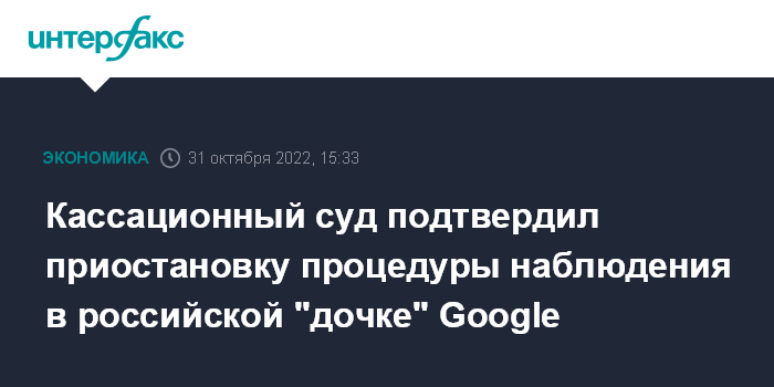 Кассационный суд подтвердил приостановку процедуры наблюдения в российской "дочке" Google