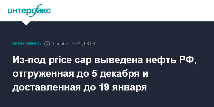 Из-под price cap выведена нефть РФ, отгруженная до 5 декабря и доставленная до 19 января