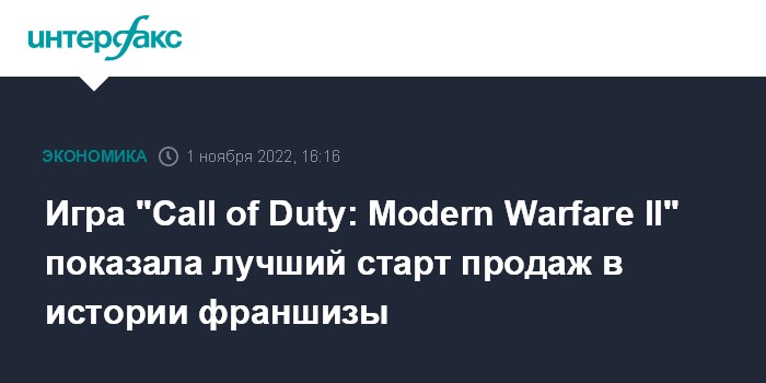 Москва. 1 ноября. INTERFAX.RU - Продажи видеоигры "Call of Duty: Modern Warfare II" за три дня после релиза, состоявшегося 28 октября, составили $800 млн, что является лучшим дебютом в истории игр этой серии, говорится в сообщении разработчика Activision Blizzard Inc.