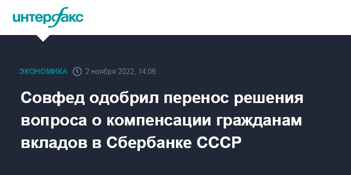 Совфед одобрил перенос решения вопроса о компенсации гражданам вкладов в Сбербанке СССР