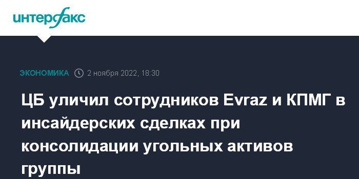 ЦБ уличил сотрудников Evraz и КПМГ в инсайдерских сделках при консолидации угольных активов группы