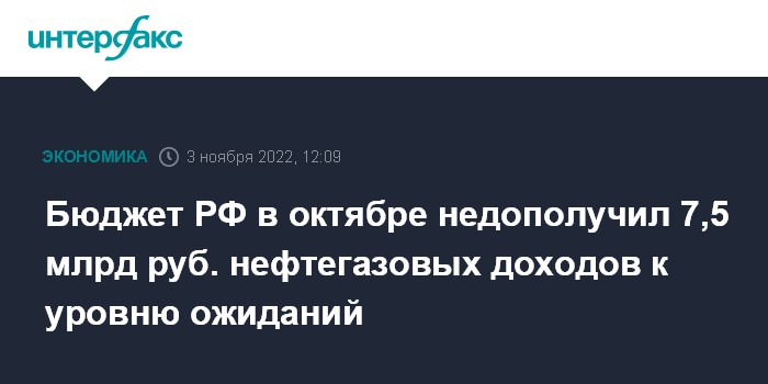 Бюджет РФ в октябре недополучил 7,5 млрд руб. нефтегазовых доходов к уровню ожиданий