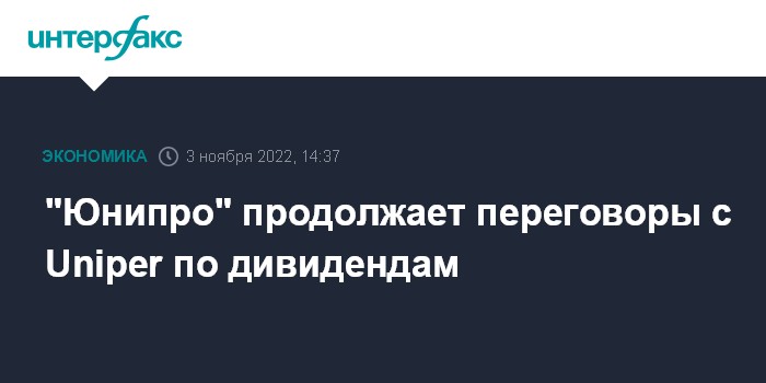 Москва. 3 ноября. INTERFAX.RU - ПАО "Юнипро" продолжает переговоры с материнской компанией Uniper по вопросу дивидендов, сообщил финдиректор "Юнипро" Ульф Баккмаейер на телефонной конференции с аналитиками.