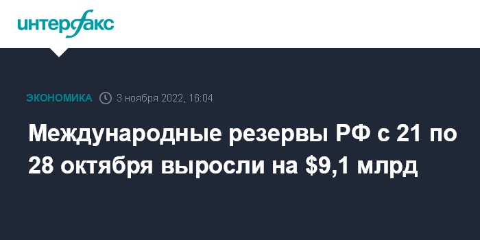 Международные резервы РФ с 21 по 28 октября выросли на $9,1 млрд