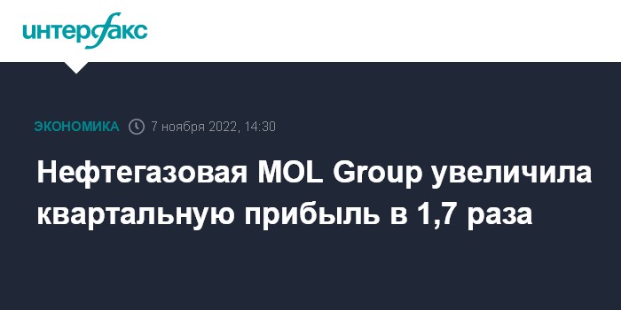 Москва. 7 ноября. INTERFAX.RU - В III квартале 2022 года венгерская нефтегазовая MOL Group получила чистую прибыль в размере $658 млн, что на 5% меньше показателя предшествующего квартала, но в 1,7 раза больше, чем за аналогичный период 2021 года.