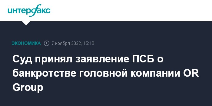 Суд принял заявление ПСБ о банкротстве головной компании OR Group
