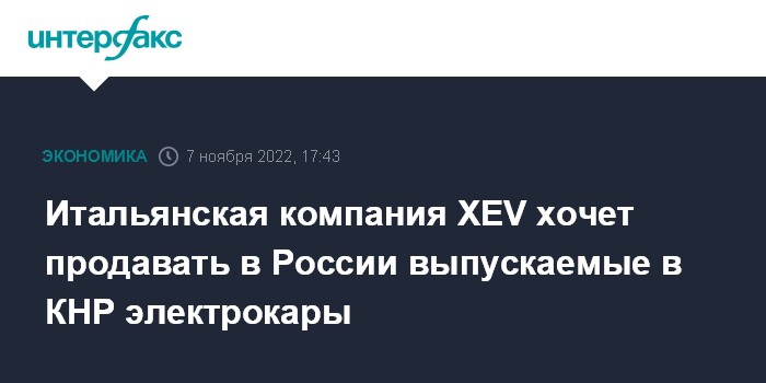 Москва. 7 ноября. INTERFAX.RU - Итальянский стартап XEV, который разработал микроэлектрокары XEV YoYo и наладил их выпуск в Китае, сообщил, что этот бренд может появиться на российском авторынке в 2023 году.