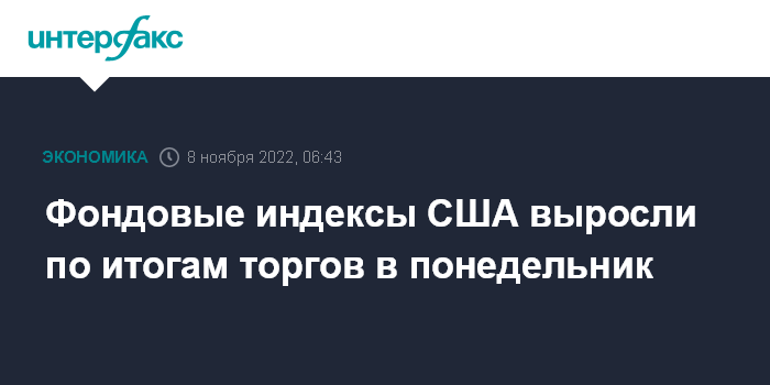 Москва. 8 ноября. INTERFAX.RU - Американские фондовые индексы завершили ростом торги в понедельник.