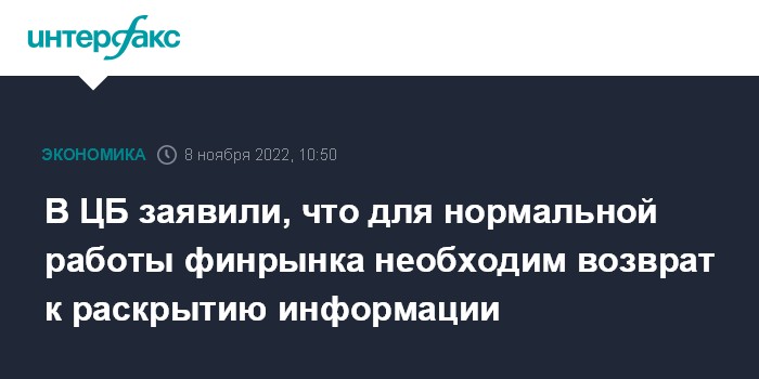 В ЦБ заявили, что для нормальной работы финрынка необходим возврат к раскрытию информации