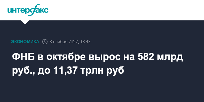 ФНБ в октябре вырос на 582 млрд руб., до 11,37 трлн руб
