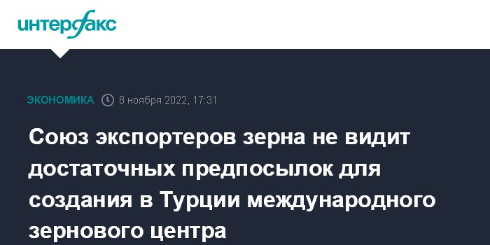 Москва. 8 ноября. INTERFAX.RU - Идея создания в Турции зернового центра для хранения и реализации зерна из РФ как международного проекта пока не имеет достаточных предпосылок, считает председатель правления Союза экспортеров зерна Эдуард Зернин.