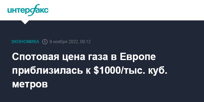 Спотовая цена газа в Европе приблизилась к $1000/тыс. куб. метров