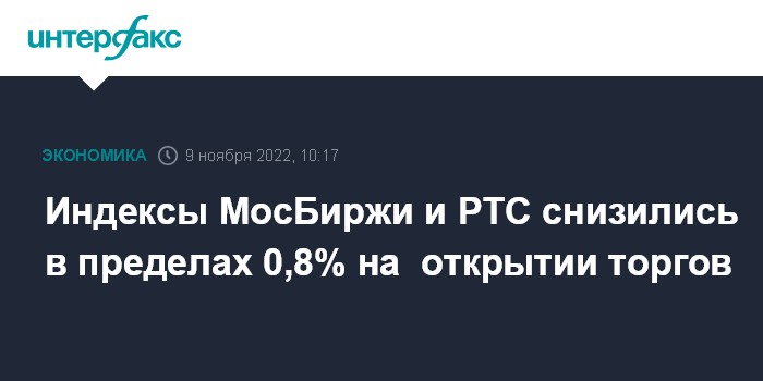 Индексы МосБиржи и РТС снизились в пределах 0,8% на открытии торгов