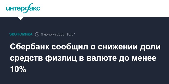 Сбербанк сообщил о снижении доли средств физлиц в валюте до менее 10%