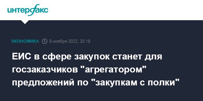 Москва. 9 ноября. INTERFAX.RU - Единая информационная система (ЕИС) в сфере закупок с 1 января 2023 года станет для госзаказчиков "агрегатором" предложений по так называемым "закупкам с полки" (закупки в "электронных магазинах" на сумму до 3 млн рублей), следует из правительственного постановления (№1946), опубликованного на портале правовой информации.
