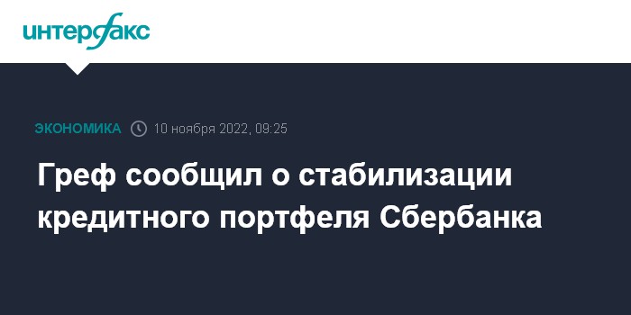 Москва. 10 ноября. INTERFAX.RU - Сбербанк добился стабилизации качества кредитного портфеля, доля просроченной задолженности находится ниже 2,2% - уровня конца 2021 года, сообщил журналистам в кулуарах форума Finopolis президент - председатель правления Сбера Герман Греф .
