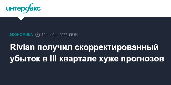 Rivian получил скорректированный убыток в III квартале хуже прогнозов