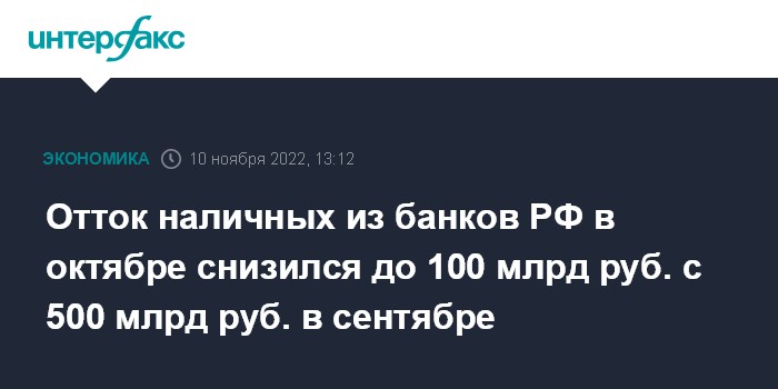 Отток наличных из банков РФ в октябре снизился до 100 млрд руб. с 500 млрд руб. в сентябре