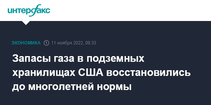 Москва. 11 ноября. INTERFAX.RU - Уровень запасов газа в подземных хранилищах в США восстановился почти до многолетней нормы (среднего показателя за последние пять лет). Однако растущий экспорт СПГ (прежде всего в Европу) на фоне стабильной или даже немного снижающейся добычи делает баланс предстоящей зимой более дефицитным, чем в предыдущие годы.