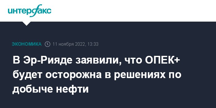 В Эр-Рияде заявили, что ОПЕК+ будет осторожна в решениях по добыче нефти