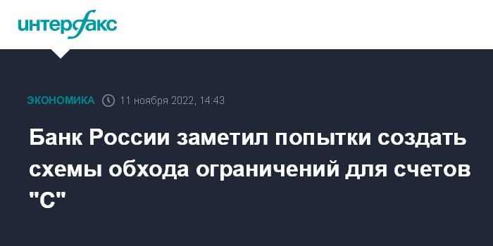 Москва. 11 ноября. INTERFAX.RU - Банк России фиксирует попытки участников рынка создать схемы обхода ограничений для счетов типа "С", на которых блокируются средства нерезидентов из "недружественных" юрисдикций.