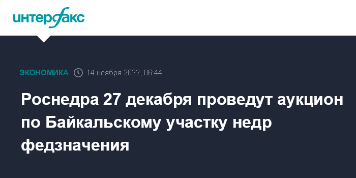 Роснедра 27 декабря проведут аукцион по Байкальскому участку недр федзначения
