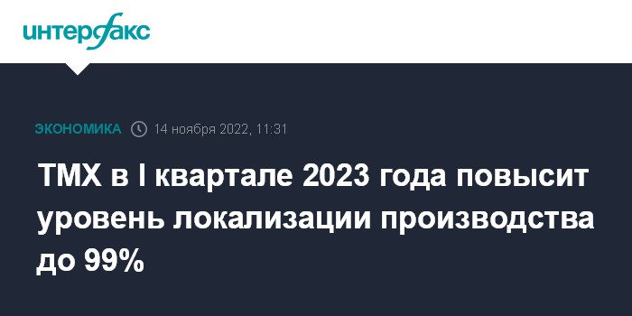 ТМХ в I квартале 2023 года повысит уровень локализации производства до 99%