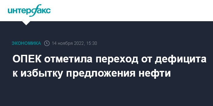 "В I квартале 2022 года мировые запасы нефти продолжили тенденцию к снижению, наблюдаемую с конца 2020 года, поскольку общий спрос на нефть опережал мировое предложение нефти на 0,3 млн б/с. Однако эта тенденция изменилась во II и III кварталах 2022 года, поскольку мировое предложение нефти превысило общий спрос на нефть на 0,2 млн баррелей в сутки и 1,1 млн баррелей в сутки соответственно. Это подчеркивает очевидный переход от дефицита к профициту в отношении предложения нефти", - пишет ОПЕК.