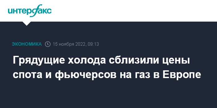 Москва. 15 ноября. INTERFAX.RU - Приближающиеся холода почти сравняли цены спотовых (с немедленной поставкой) и фьючерсных контрактов на газ на европейском рынке. Контракт "на день вперед" на хабе TTF вырос до $1153 за тысячу кубометров (при том, что в начале ноября он падал до $225).