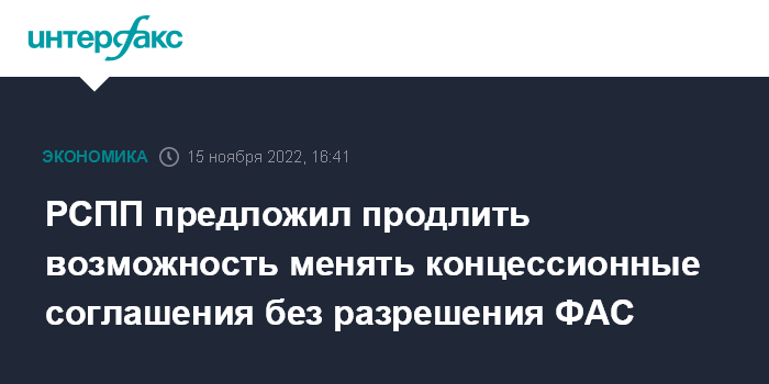 РСПП предложил продлить возможность менять концессионные соглашения без разрешения ФАС