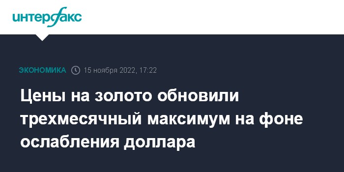 Москва. 15 ноября. INTERFAX.RU - Цены на золото умеренно выросли в ходе торгов во вторник, однако этого хватило для обновления трехмесячного максимума.