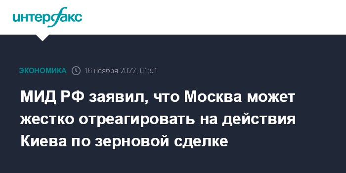 МИД РФ заявил, что Москва может жестко отреагировать на действия Киева по зерновой сделке