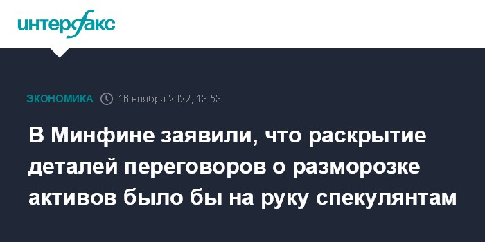 В Минфине заявили, что раскрытие деталей переговоров о разморозке активов было бы на руку спекулянтам