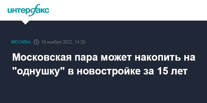 Москва. 16 ноября. INTERFAX.RU - В Москве среднестатистическая семья из двух человек может накопить на однокомнатную квартиру в новостройке примерно за 15 лет, подсчитали аналитики ГК "Миэль".