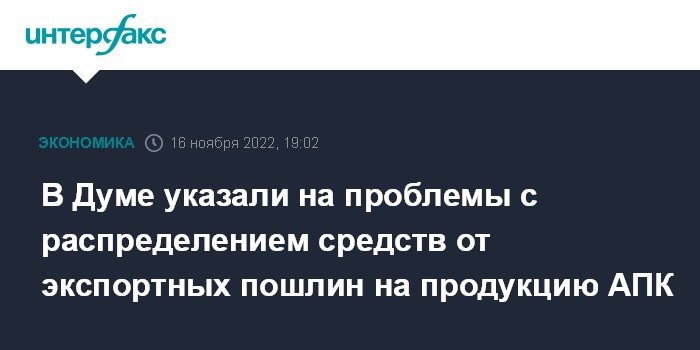 В Думе указали на проблемы с распределением средств от экспортных пошлин на продукцию АПК