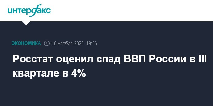 Москва. 16 ноября. INTERFAX.RU - В III квартале снижение российского ВВП составило 4% в годовом выражении после спада на 4,1% во II квартале и роста на 3,5% в I квартале, предварительно сообщил Росстат.