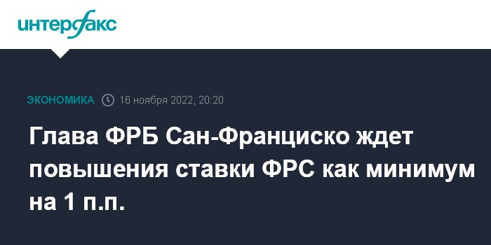 Глава ФРБ Сан-Франциско ждет повышения ставки ФРС как минимум на 1 п.п.