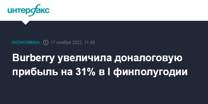 Москва. 17 ноября. INTERFAX.RU - Британская Burberry Group Plc, один из ведущих мировых производителей товаров класса люкс, в первом финполугодии увеличила доналоговую прибыль и выручку, а также подтвердила среднесрочные прогнозы.