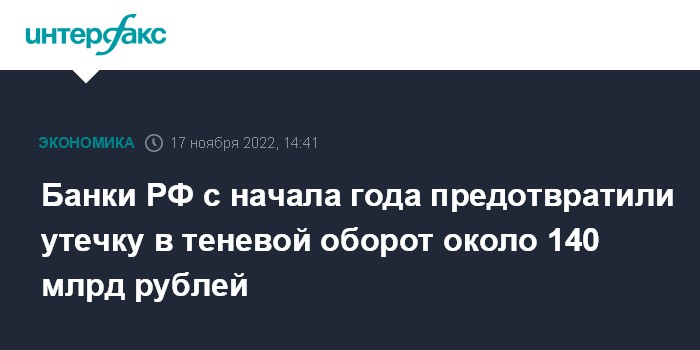 Банки РФ с начала года предотвратили утечку в теневой оборот около 140 млрд рублей