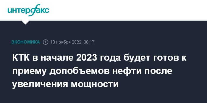 "В начале 2023 года КТК будет готов к приёму нефти согласно повышенным заявкам грузоотправителей", - добавил он.