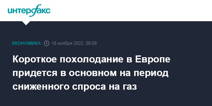 Москва. 18 ноября. INTERFAX.RU - Нынешнее похолодание в Европе оказалось более суровым, чем предварительно прогнозировалось, но менее продолжительным. При этом большая его часть придется на выходные дни, когда спрос на газ в системе понижен. Это оказало корректирующее воздействие на рыночные цены в Европе.