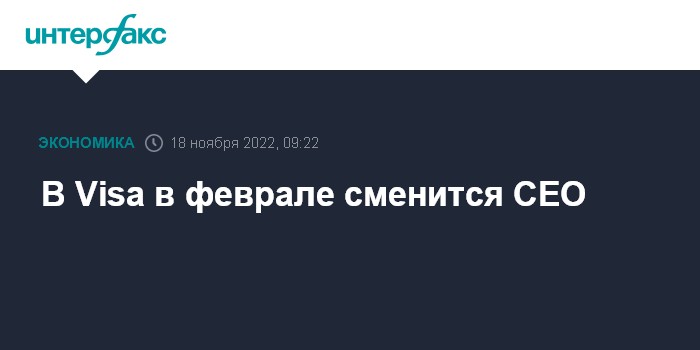 Москва. 18 ноября. INTERFAX.RU - Главный исполнительный директор Visa Inc. Альфред Келли покинет свой пост, его с 1 февраля 2023 года сменит нынешний президент компании Райан Макинерни. Об этом сообщила пресс-служба компании.