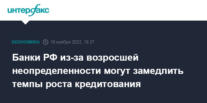 Москва. 18 ноября. INTERFAX.RU - Банки РФ из-за возросшей неопределенности могут замедлить темпы роста розничного и корпоративного кредитования, говорится в комментарии по денежно-кредитным условиям и трансмиссионному механизму денежно-кредитной политики ЦБ.