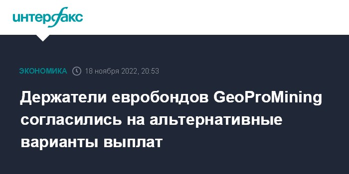 Москва. 18 ноября. INTERFAX.RU - Компания GeoProMining получила согласие держателей выпуска долларовых евробондов с погашением в 2024 году на использование альтернативных вариантов платежей, сообщил эмитент евробондов.
